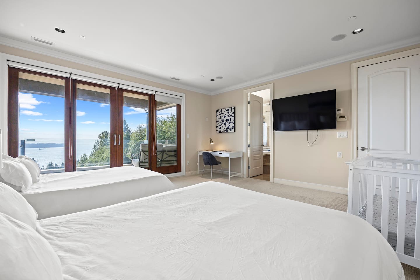 Luxury meets comfort in this ocean-view Vancouver retreat, perfect for families, couples, and group getaways. Designed for unforgettable stays, this spacious home offers resort-style amenities, private ensuite bedrooms, and premium entertainment—all in a peaceful residential neighborhood.