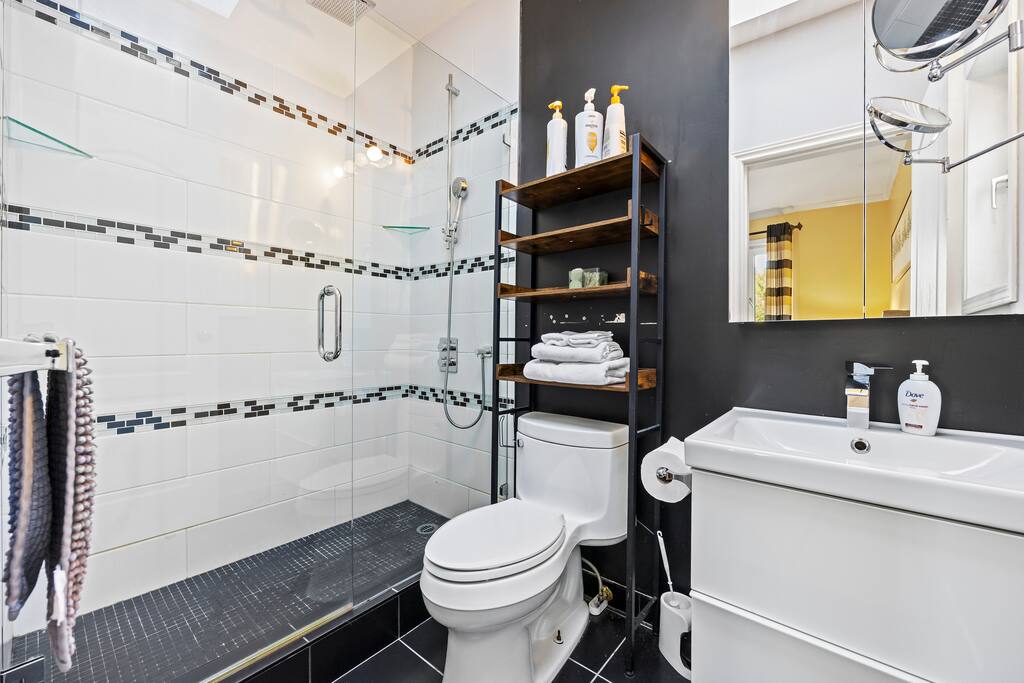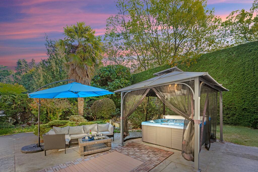 🛏️ Sleeping Arrangements & Bathroom Configurations: 2️⃣ 2F (Second Floor): Bedroom 1: 2 Queen beds – with private bathroom Bedroom 2: 1 Queen bed – shared bathroom with Bedroom 3 Bedroom 3: 1 Queen bed – shared bathroom with Bedroom 2 Bedroom 4: 1 Queen bed – with private bathroom 1️⃣ 1F (First Floor): Bedroom 5: 2 Queen beds – no private bathroom Half Bathroom: Located beside the kitchen 🛋️ Living Room: 1 Couch - A deep, one-meter-wide couch is available in the living area. While not a designated sofa bed, guests may remove the cushions and use it for lounging or sleeping if needed. Full Bathroom: Located besides the living room 🅱️ Basement: Bedroom 6: 1 Queen bed – with private bathroom Full Bathroom: Located beside the living room (shared) ✨ Luxurious Features ✔ Spacious Living & Dining Areas – Featuring contemporary eclectic décor and an open-concept layout with high ceilings and large windows ✔ Gourmet Kitchen – Fully equipped with built-in appliances and extensive counter space ✔ Cozy Family and Recreation Rooms – Perfect for gathering, relaxing, and entertainment ✔ Private Outdoor Spaces – Large balconies, decks, and lush green spaces surrounded by mature vegetation ✔ Modern Bathrooms – 5.5 bathrooms featuring standing showers, soaking tubs, and elegant finishes ✔ Toddler-Friendly Amenities – Including a Pack ‘n’ Play and high chair available upon request 🌿 Outdoor Oasis ✔ Backyard Retreat – Hot tub, hammock, swing chairs, lounge chairs, and a covered patio with an outdoor fireplace ✔ BBQ Grill – Complimentary propane provided ✔ Spacious Gated Parking – Up to 5 vehicles inside the gated property, no street parking required 📍 Prime Location ✔ Steps to Maple Grove Park ✔ Near UBC and top golf clubs – Marine Drive Golf Club, Point Grey Golf & Country Club, Shaughnessy Golf & Country Club ✔ Close to Southlands Riding Club and stables – Perfect for equestrian lovers ✔ Easy access to local amenities, parks, and recreation areas
