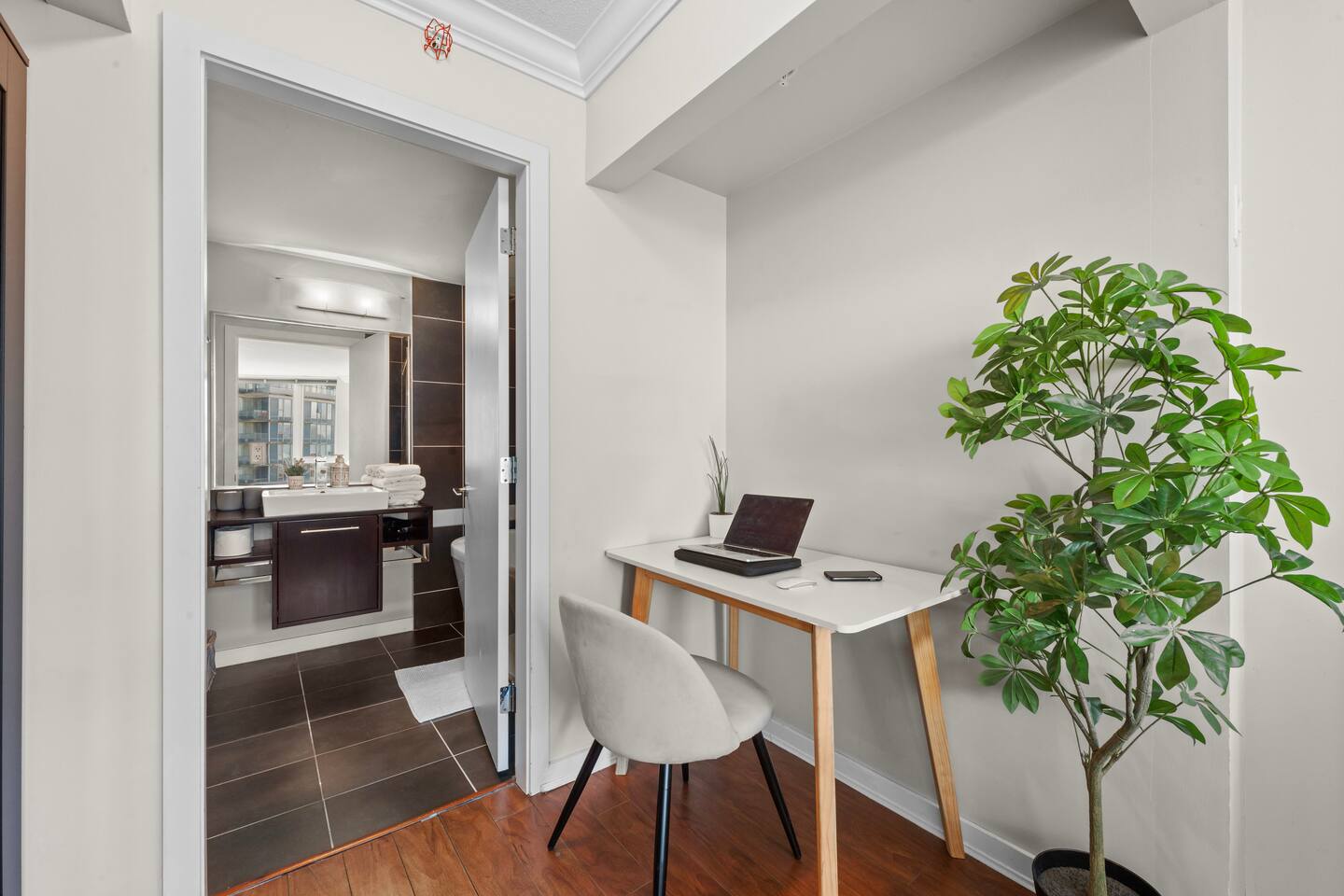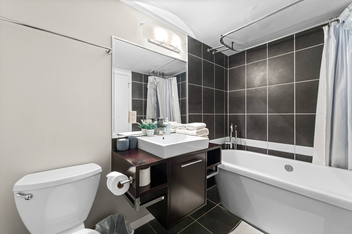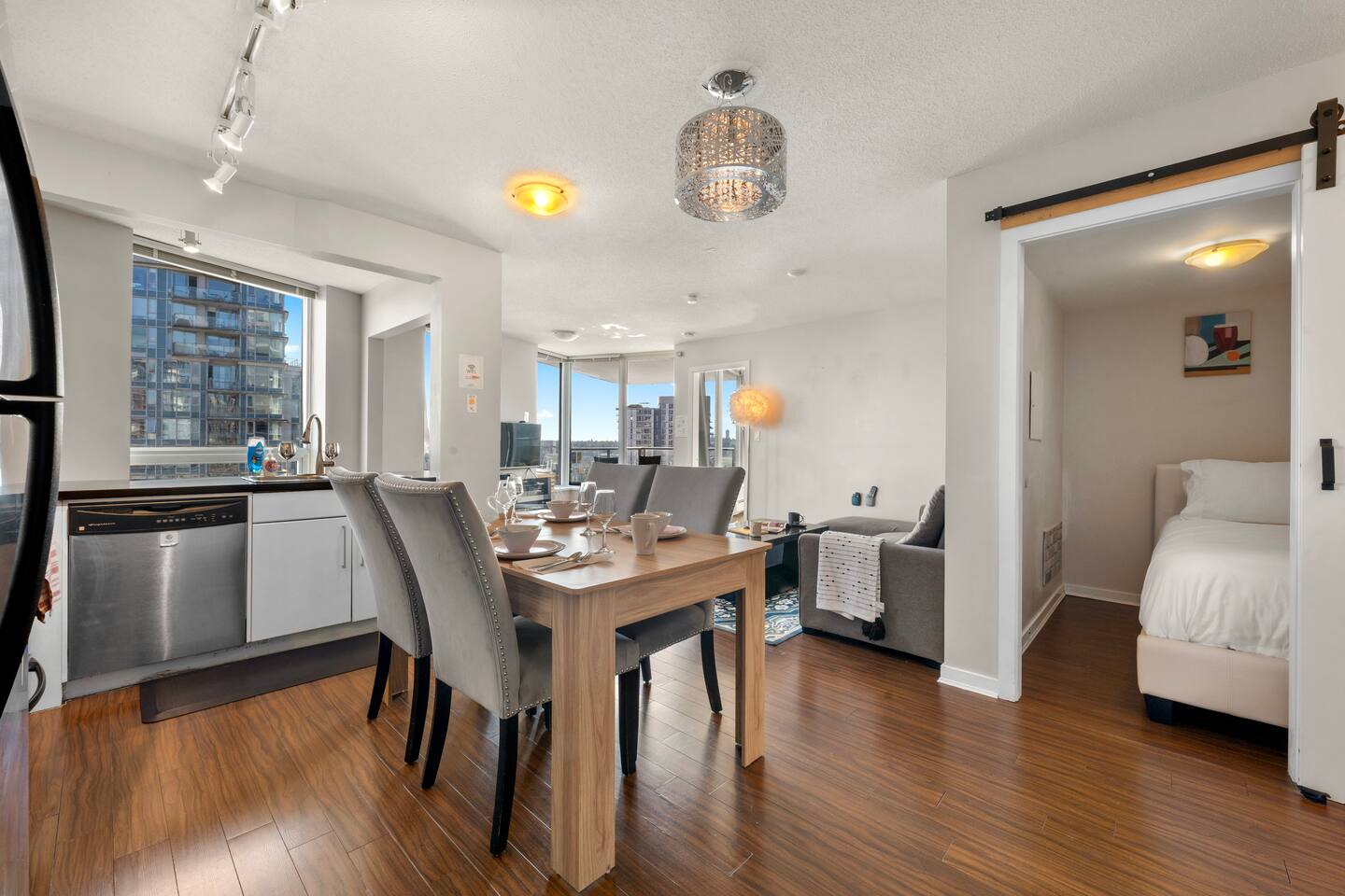 Bedrooms: Primary: Queen bed, ensuite, desk, mountain view Second: Queen bed, desk, city view Den: Single bed for extra guests Extra: Sofa in living room converts into a bed Kitchen & Dining: Fully equipped: Nespresso (free pods), stove, oven, microwave, dishwasher Dining: Glass table + breakfast bar with stools Living & Balcony: Smart TV w/ Roku Private balcony for coffee or sunsets 🛜Fast 5G WiFi 🚻Bathrooms: 🧴Fresh towels & essentials (shampoo, conditioner, body wash, toothpaste)
